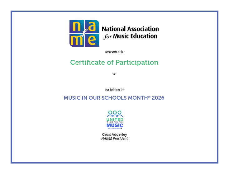 Share how your school, chapter, or institution participated in Music In Our Schools Month this year! Request your participation certificate by April 15, 2026.